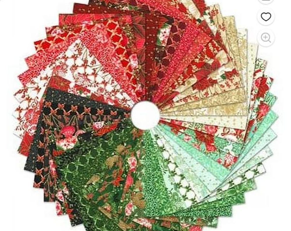 Fabric Holiday Flourish Peppermint Twist Christmas FAT QUARTER bundle AND Panel with Metallic Gold