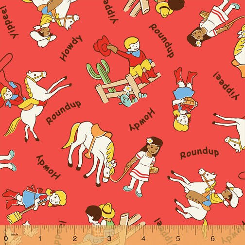FABRIC Storybook RANCH Kids Way out WEST on Red We combine shipping Listing is for 1 Yard
