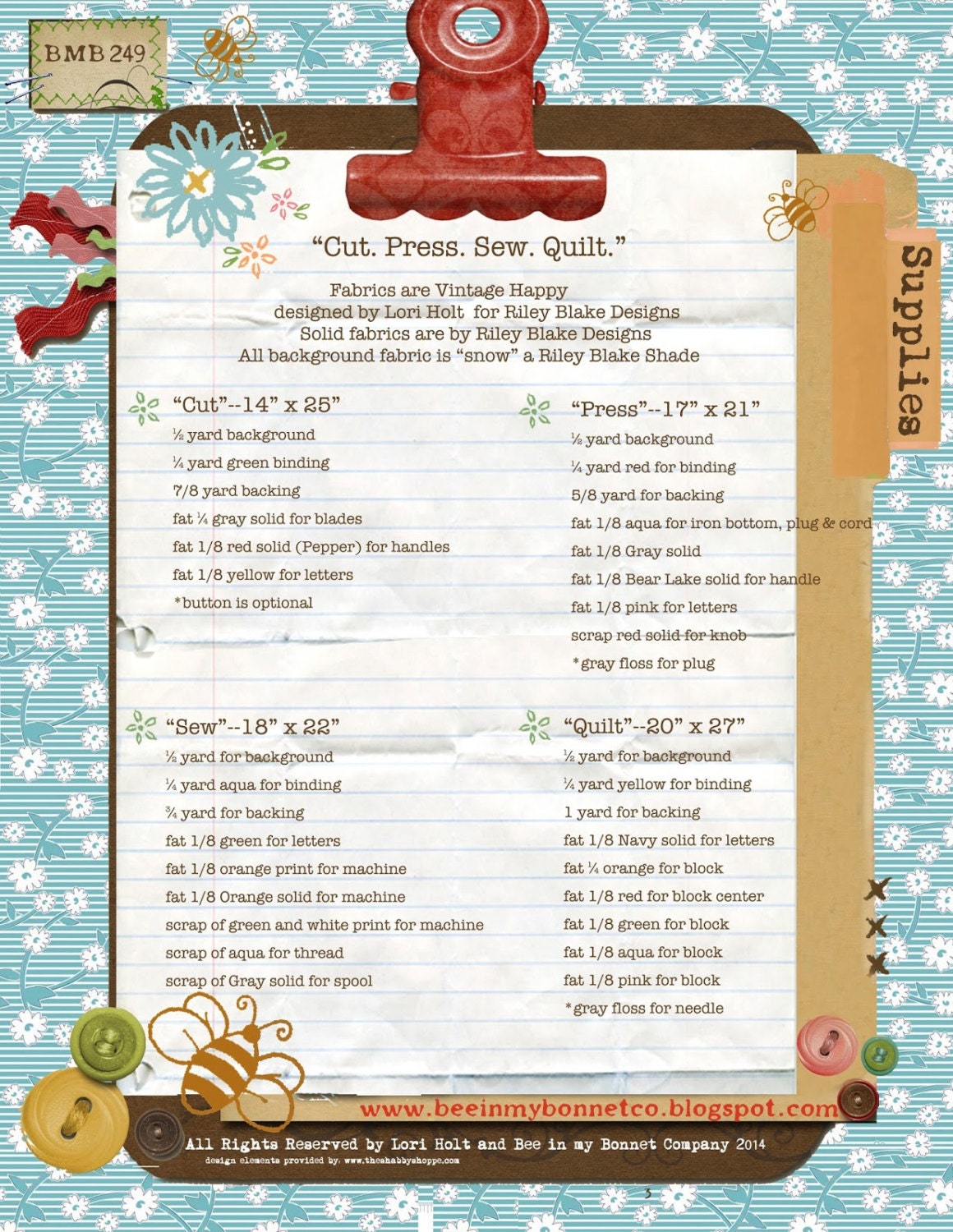 You will love this adorable quilts. Use them to decorate your sewing room or just frame the tops or make them into pillows or make on and give one. The sky is the limit with this collection and you get the pattern for all four in one pattern.