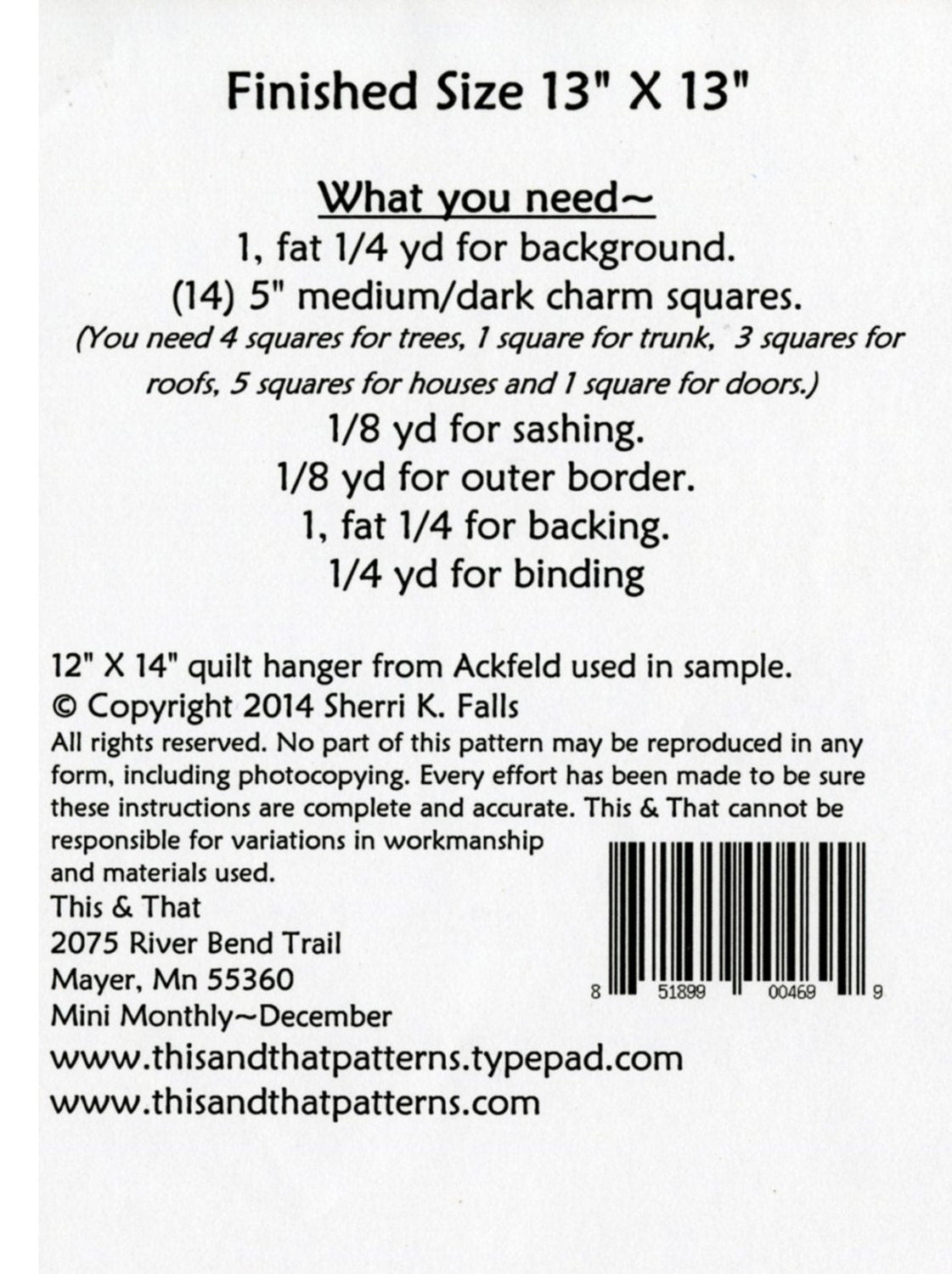 quilt patterns for the month of December by This & That.