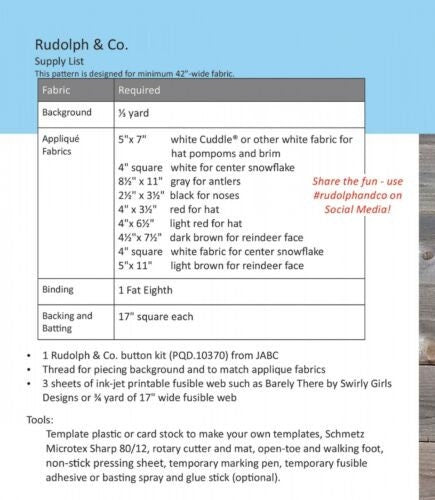 PATTERN Rudolph & Co. MINI Tree Skirt Applique Quilting Pattern