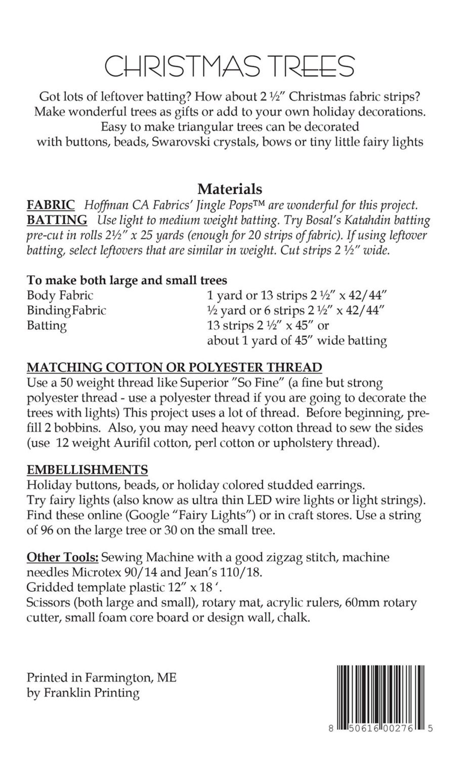 Small Tree finished size is 8.5" x 5".