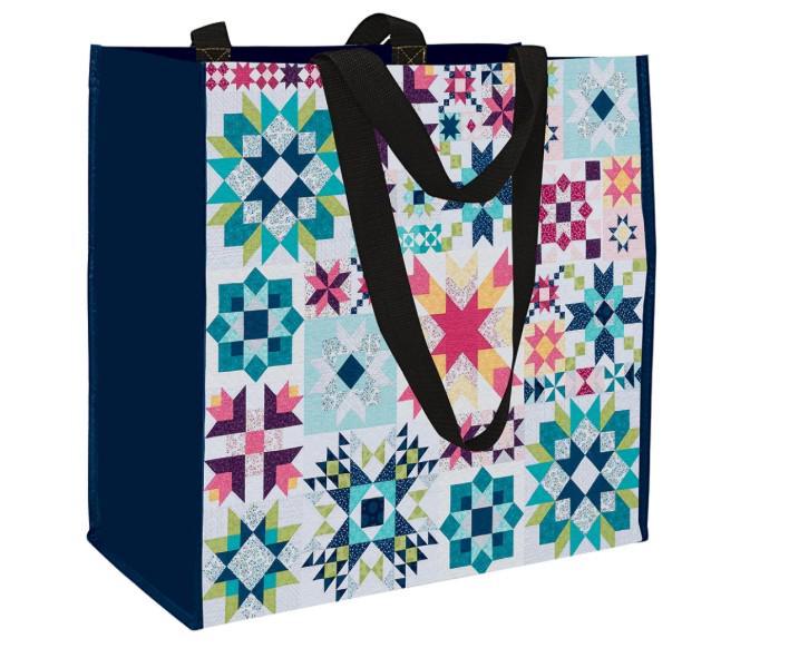 Heavy-duty, double-handled, oversized tote bag with an interior pocket, easy access opening, shoulder straps, and sturdy stitching Bottom panel is reinforced for standing upright and carrying books, sewing projects, and more Gorgeous printed bag shows off Shelley Cavanna’s The Barn Star Sampler quilt from her book, Barn Star Sampler