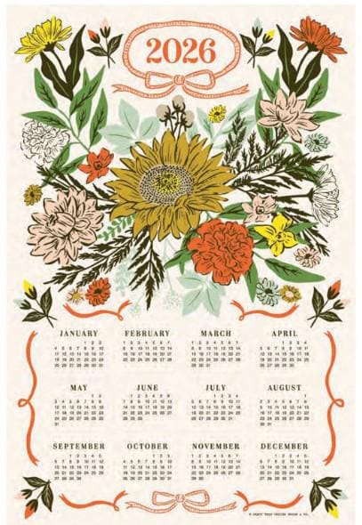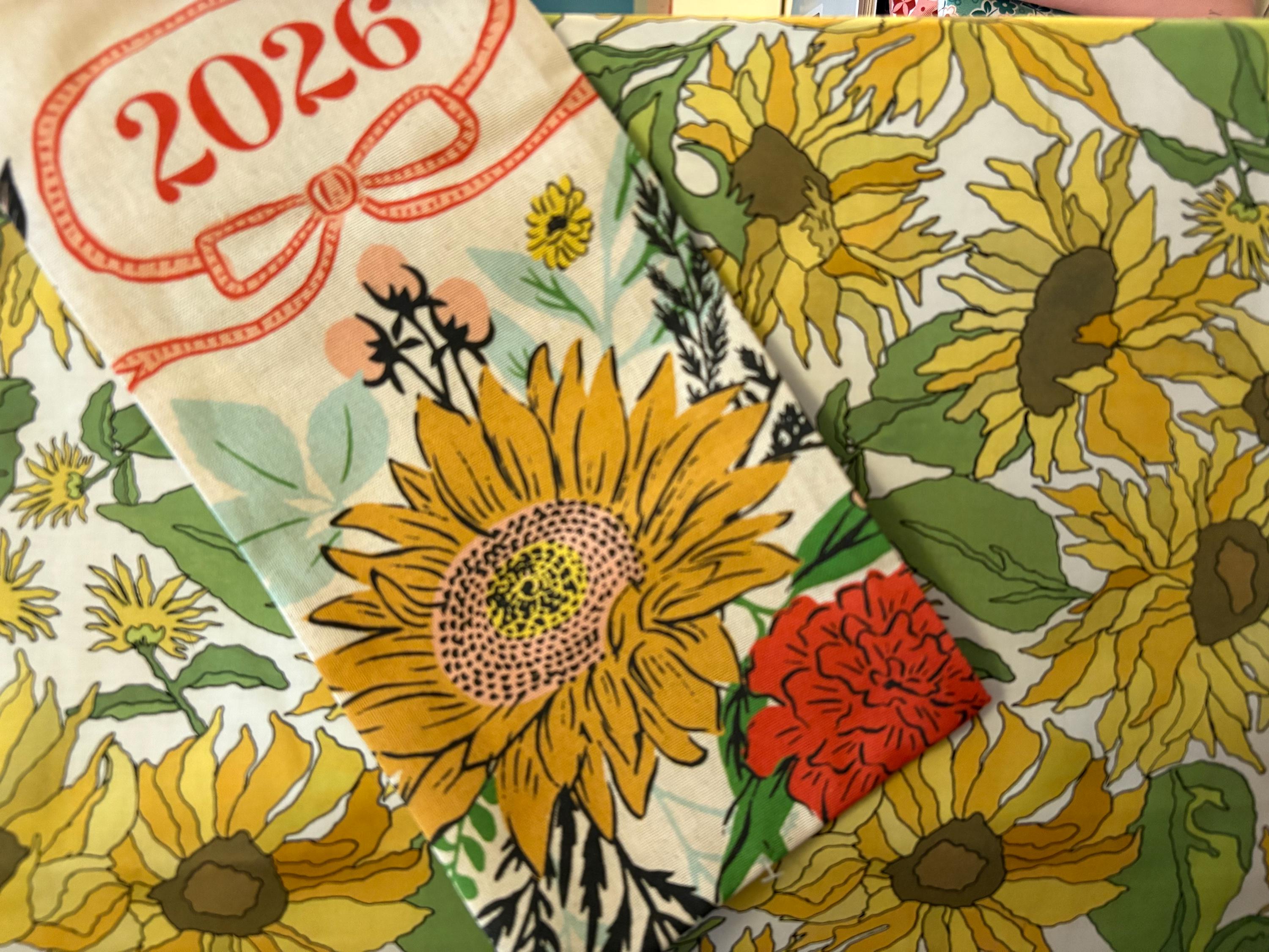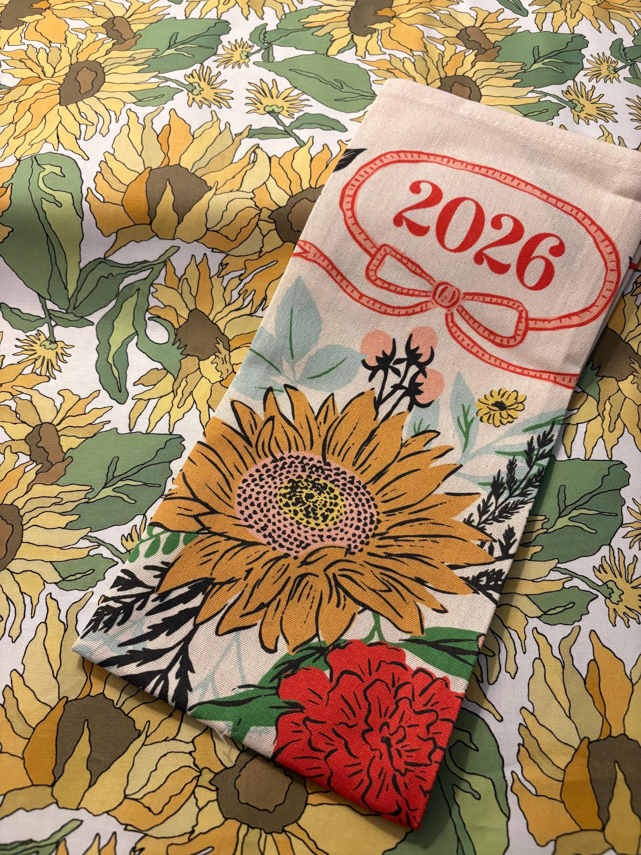 Photos show the Sunflower print paired with our 2026 Kitchen Calendar Towel. You may purchase the fabric with the calendar as a bundle. Use the fabric to back the towel or make the towel into a bag with the fabric. There are so many ways you could use the two.