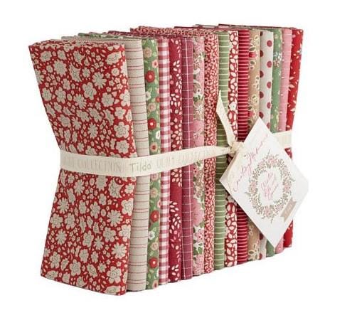 Tilda's Creating Memories Collection WINTER Fat Quarter Bundle includes 16 20in x 22in fabric pieces of the collection prints and wovens. Tilda Fabric's Creating Memories Collection are 100% cotton prints and wovens designed by Norwegian designer Tone Finnanger. The Fat Quarter Bundle is double-folded so you can easily see all the fabrics. The Winter Reds and Greens colorway contains an array of red fabrics combined with hints of green. In addition to Winter projects, this collection can of course also be useful all year round for any project where red and green fabrics are needed.