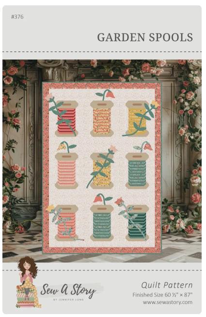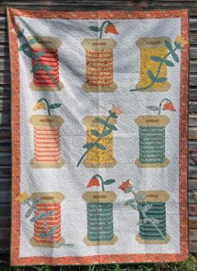 The Garden Spools Quilt is a gorgeous and whimsical design that combines traditional piecing with raw edge appliqué. This pattern evokes the fluid motion of spools unwinding, with optional floral details to add a touch of charm.