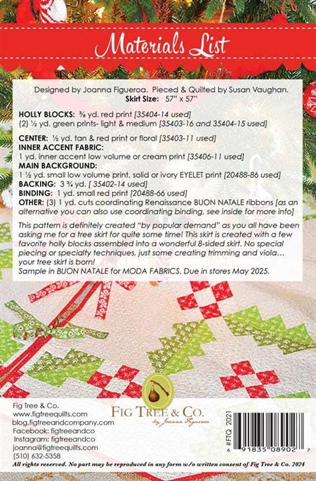 Imagine finishing off the decorating of your Christmas tree with this lovely tree skirt. It is just as pretty as it can be. No special piecing or speciatly techniques needed, just some creative trimming, and your skirt is ready. Great octagon shape.