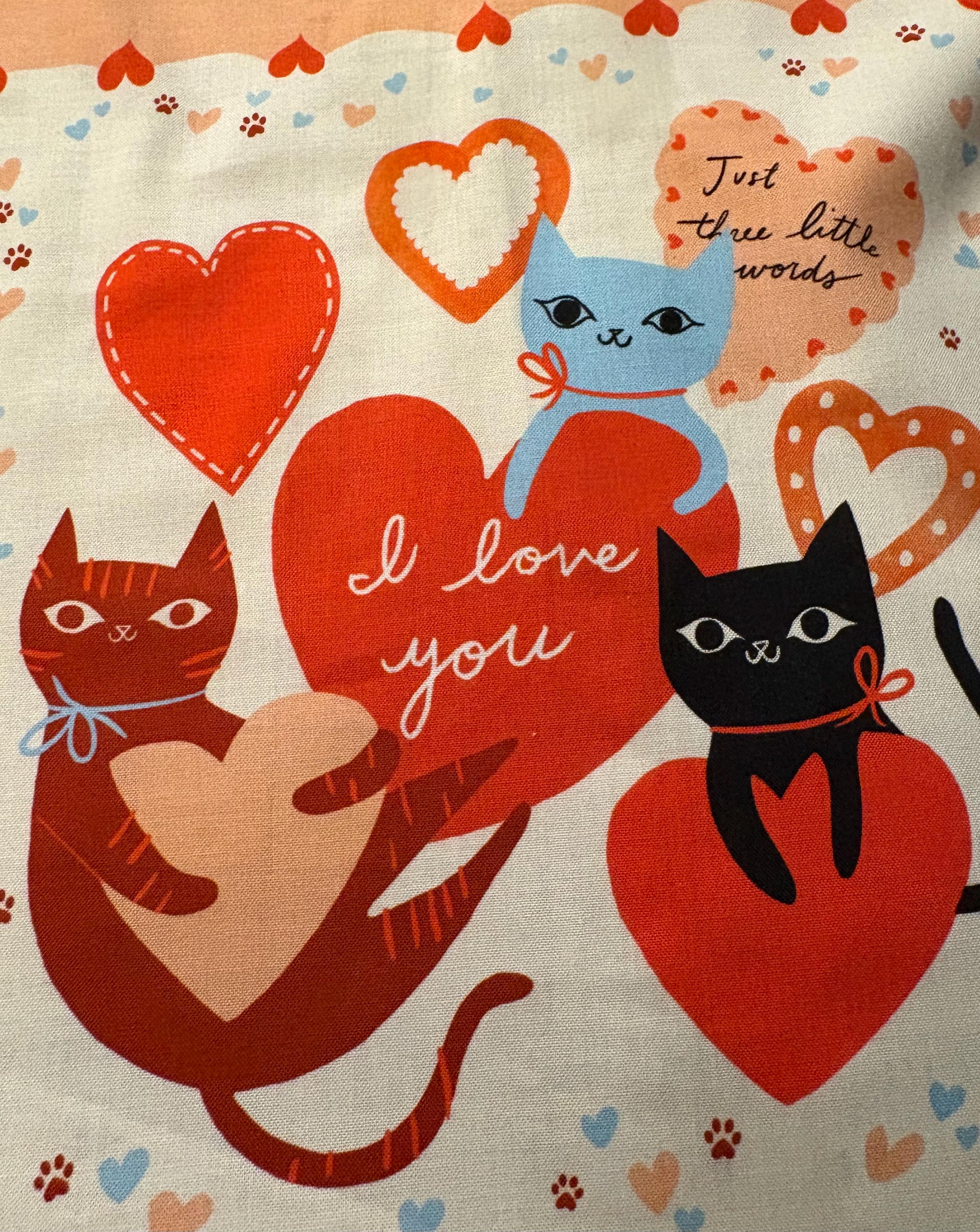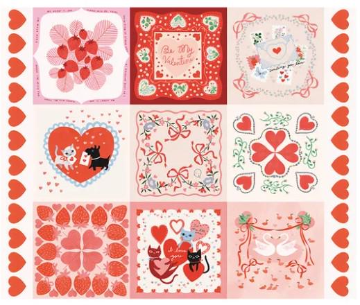 This is the most adorable line of Valentine's fabric. It is from Moda, so you know it is good quality quilting fabric. The fabric line is called Funny Valentine, and this particular print is a panel which shows printed hankies on the fabric. There are nine different hankies in one panel.