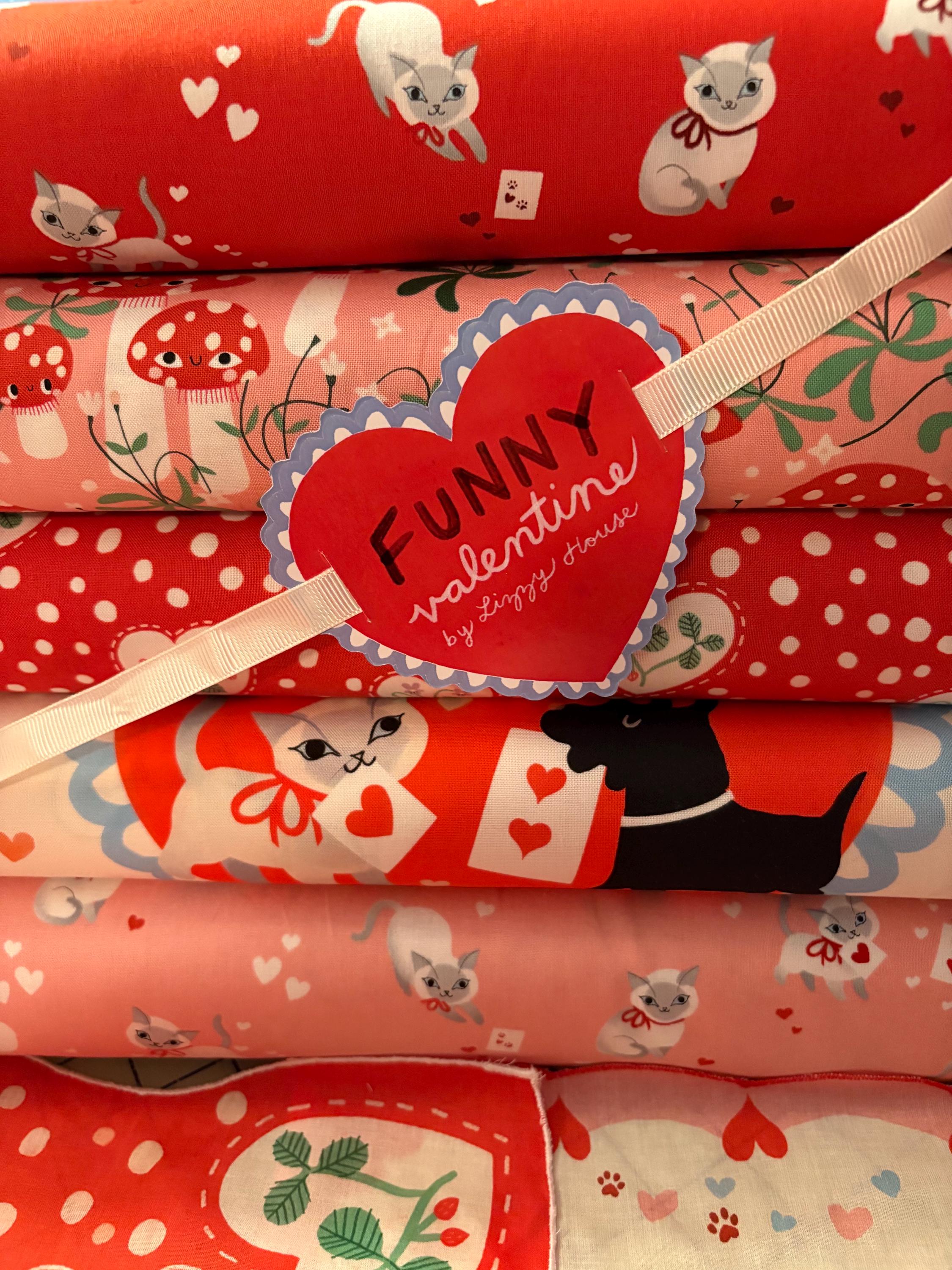 Please see the full line of Funny Valentine fabrics in our shop. We show these fabrics in photos 8 and 9. We also have a set of 4 finished Hankies set.