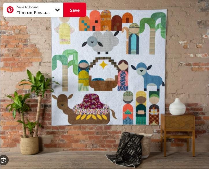 This adorable quilt depicts Jesus's birth and everything that encompasses from the three wise men, Mary, Joseph, Baby Jesus, the Shepherd, Gabriel the angel, the town of Bethlehem, and of course the animals.
