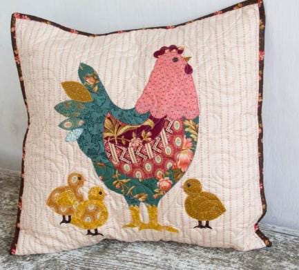 Is there anything cuter than this pillow cover? You can also make a mini quilt instead of the pillow cover. This is the Hen House Pillow cover that shows a mother Hen Chicken and her baby chicks. Perfect for Easter or for a child's bedroom or for anyone who collects chickens.