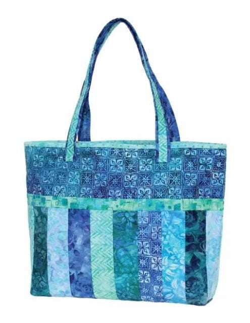 This is the Quilt As You Go Sophie Tote Bag kit. This kit is perfect for beginners or advanced quilters who want a fast and beautiful bag. The tote pattern is printed directly onto quilt batting for sew by number construction - piece and quilt all at once. FAST GIFT IDEA. Designed to work with 2.5" strips. See our shop for jelly rolls to elimate the need to cut strips. Webbing provided for extra stability on the construction of the tote's straps. All you need is fabric scraps.
