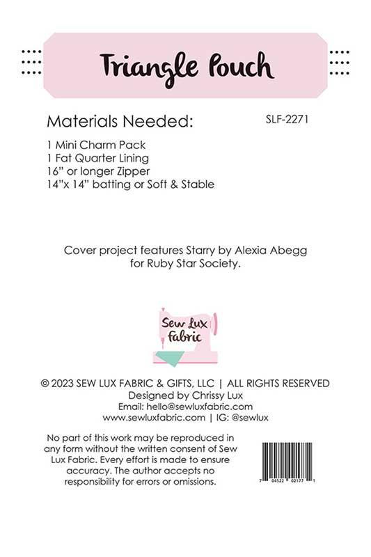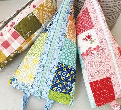 This useful Triangle Pouch is the perfect quick quilting and sewing project for you. This is a kit and all you do is add one fat quarter and some batting. The rest is here for you.
