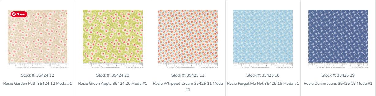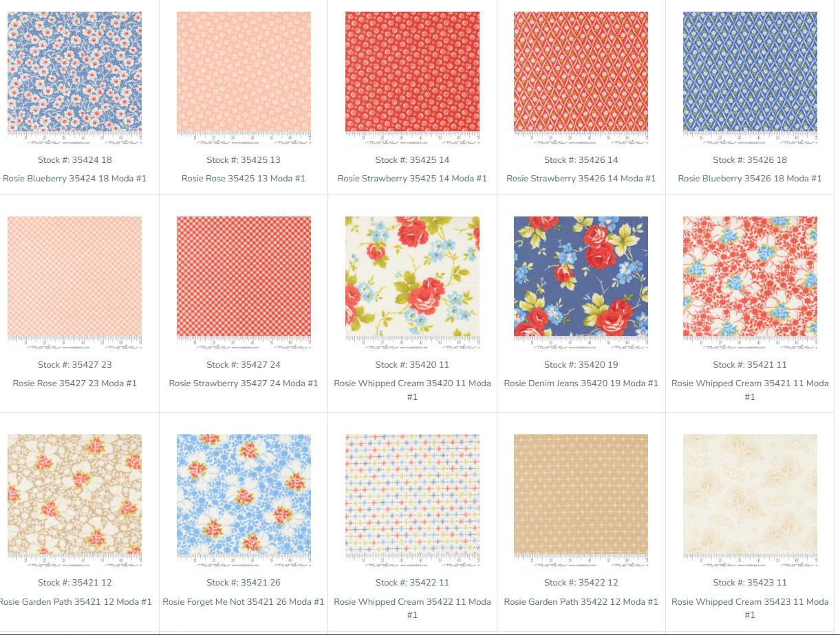 The video shows most of the fabrics that come in the mini charm pack. The other photos show up close examples of the fabrics that come in the mini charm pack as part of this kit. There are also examples shown of this kit made with other fabrics.