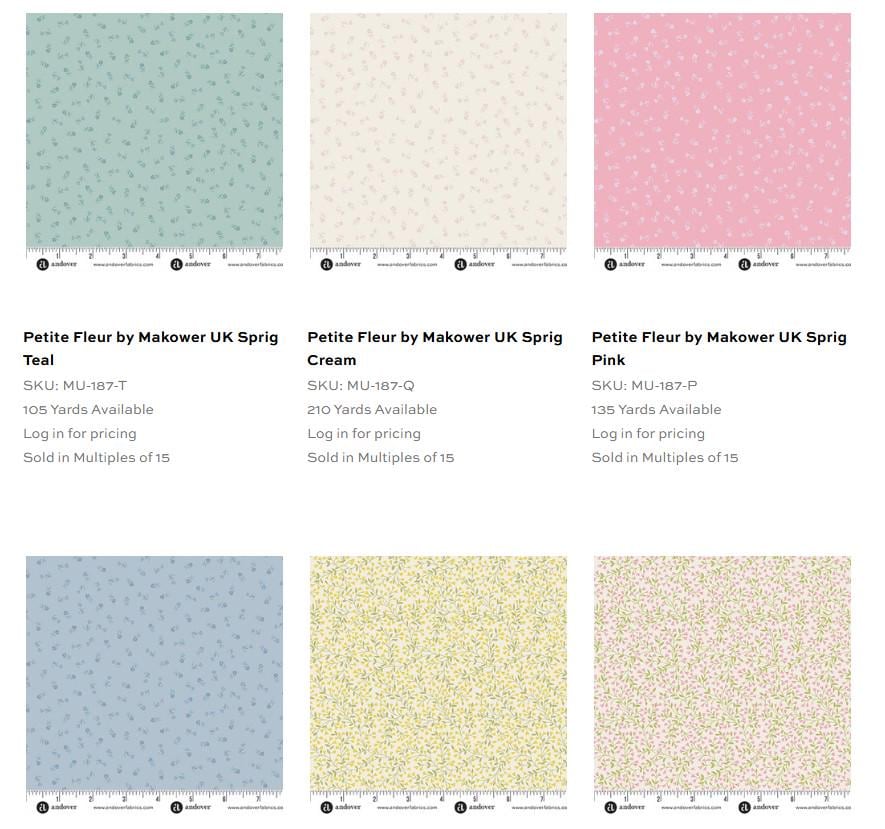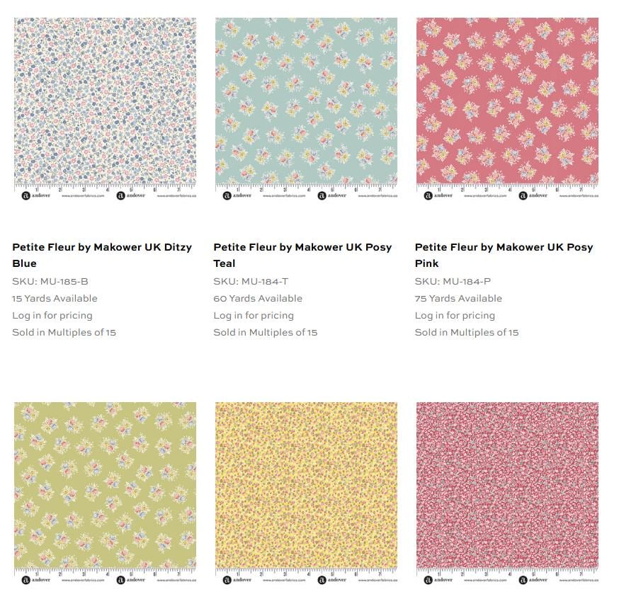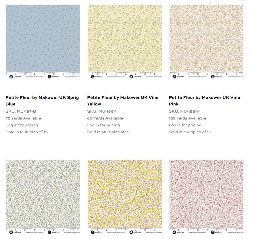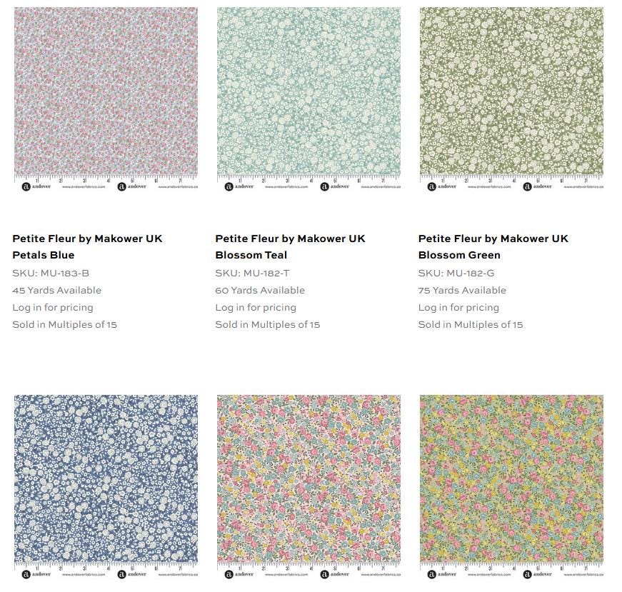 PLEASE SEE MY FAT QUARTERS AND JELLY ROLLS IN THIS Petite Fleur line.