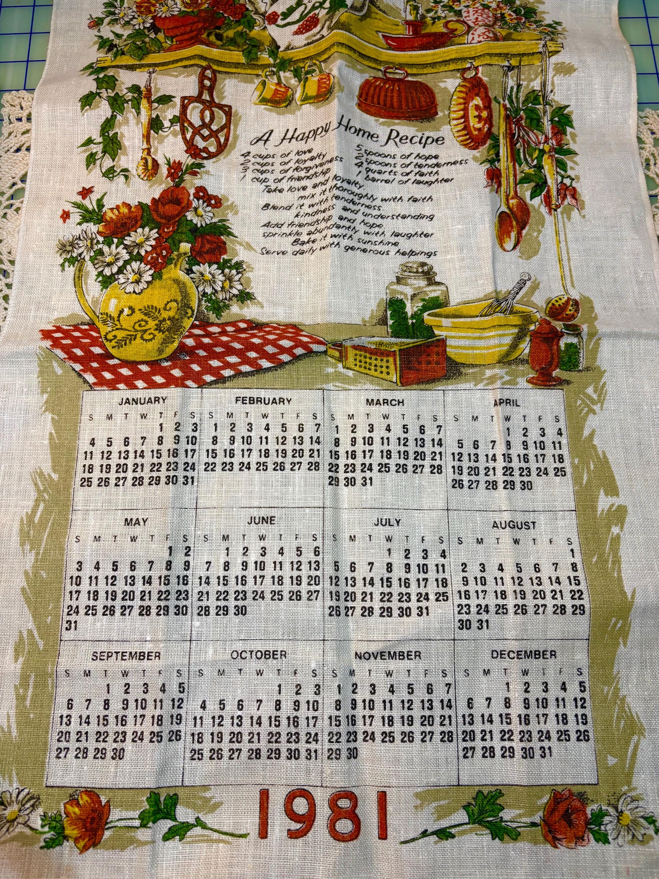 1. One Vintage Calendar Towel Recipe for a Happy Home 1981 Linen