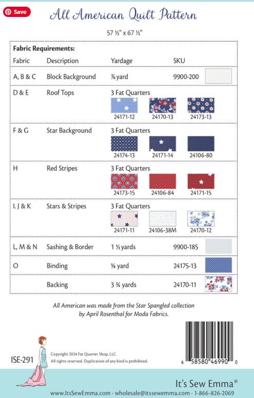 Join in the celebration of our 250th birthday. Commemorate the envent by making this quilt called "All American" by It's Sew Emma. You could even embroidery 1776-2026 and more to mark this special day.