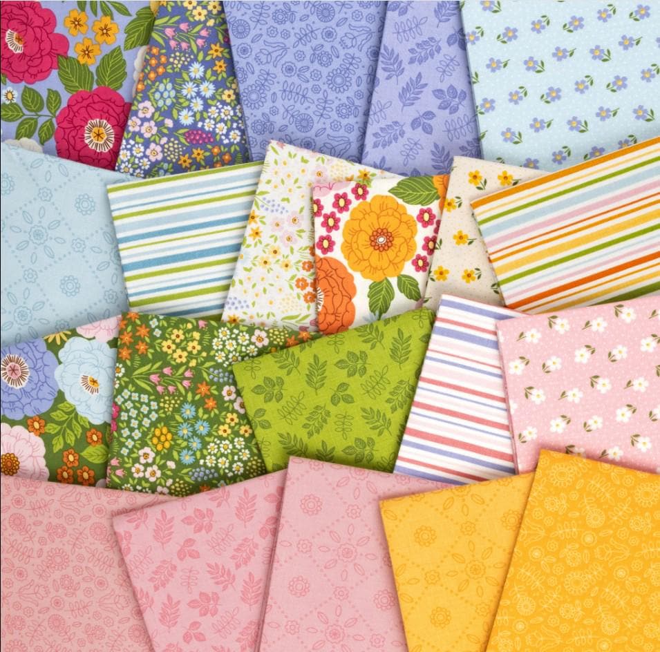 If this doesn't scream spring and summer then what does? This bundle is full of florals with the most perfect colorways. There are pinks, lavenders, greens, yellows and whites. We love that there are larger florals, small florals, stripes and ditzy prints. So, plant some spring in your home today with this Little Darlin of a Fat Quarter Bundle by Riley Blake.