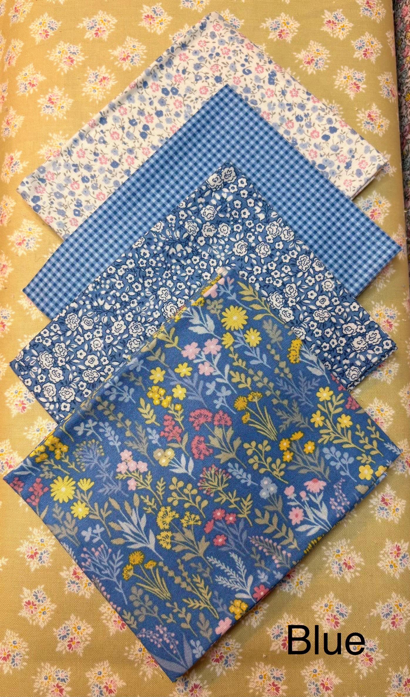 3. Blue fat quarter bundle has 4 fat quarters and includes small to medium florals and even a gingham.
