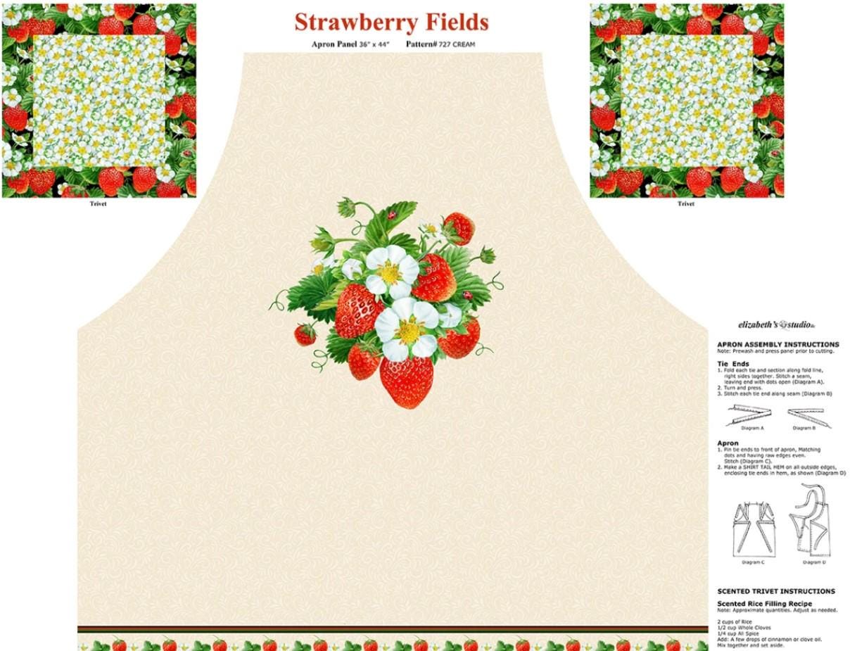 This is a very pretty bib apron to make showing strawberries and strawberry blossoms. It includes ties and trivets to make that match the apron as well. You could also choose to make them potholders too. All instructions are included on the panel.