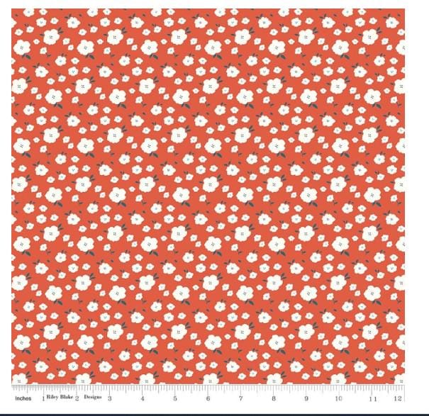 This adorable fabric line is called Serendipity 2 and is by designer Minki Kim. Her stuff is always so cute. This particular print shows medium to smaller sized white flowers on a burnt orange background. Very unique color.