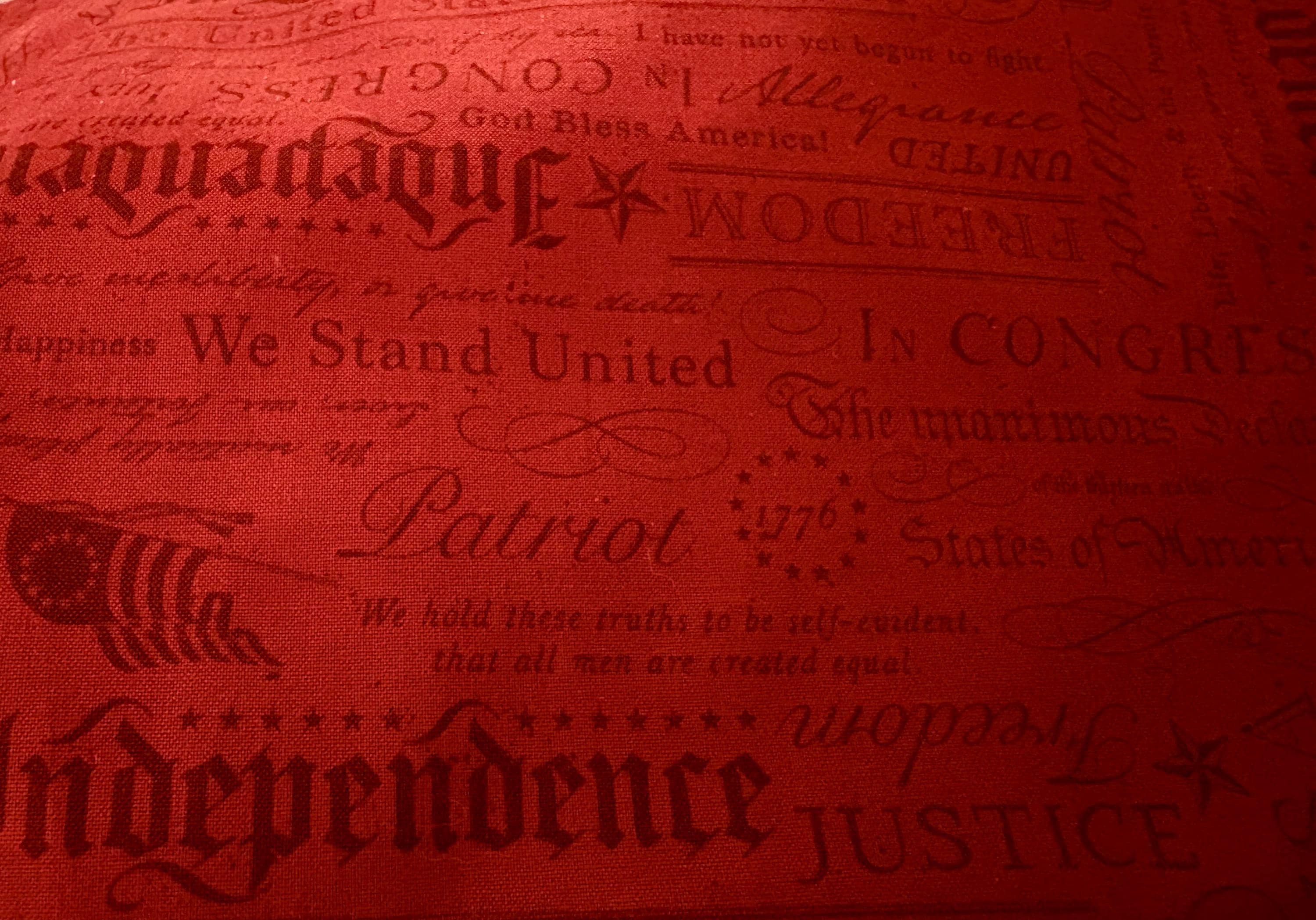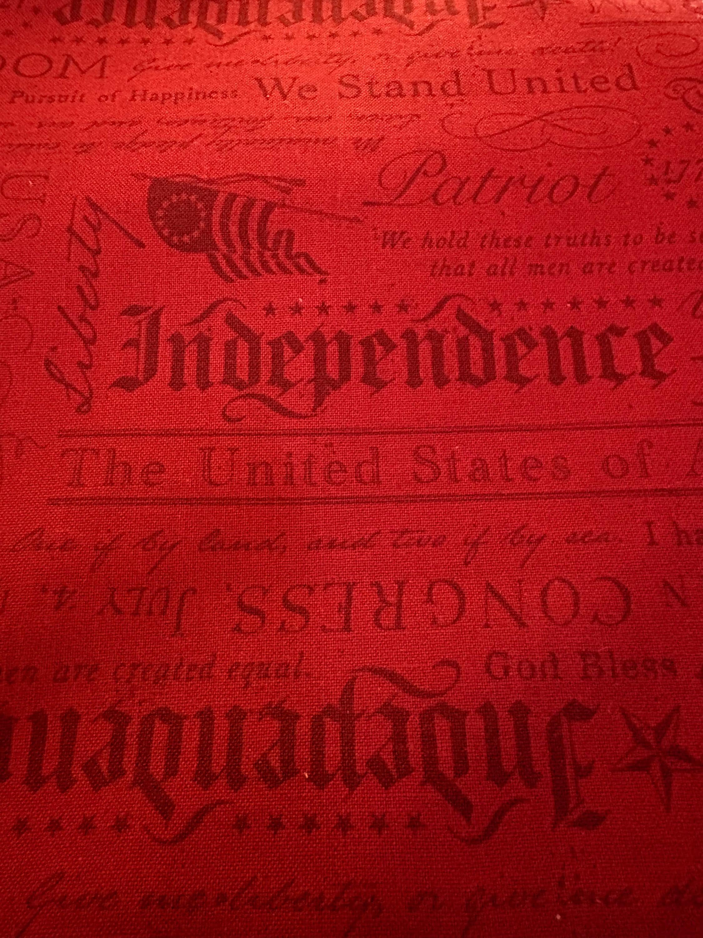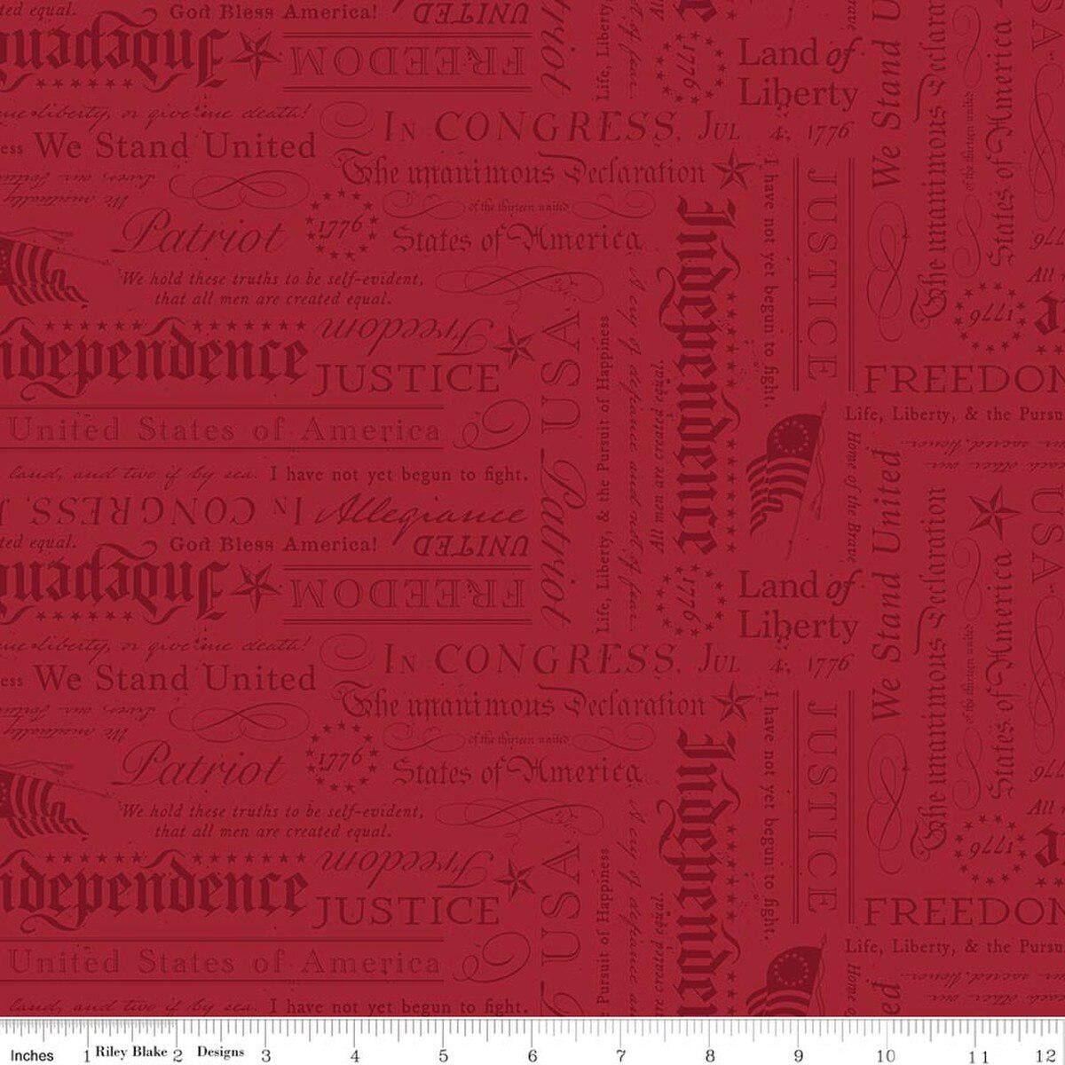 There is no better year than this year to celebrate our nation's 250th birthday. If ever there was a time to quilt/sew or craft something, now is the time. This particular fabric is from the Independence/Celebrating 250 years line. It shows the Declaration of Independence on the color Cherry Tart Red. This is a tonal print red on red. There are flags, stars, quotes and parts of the declaration itself.