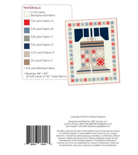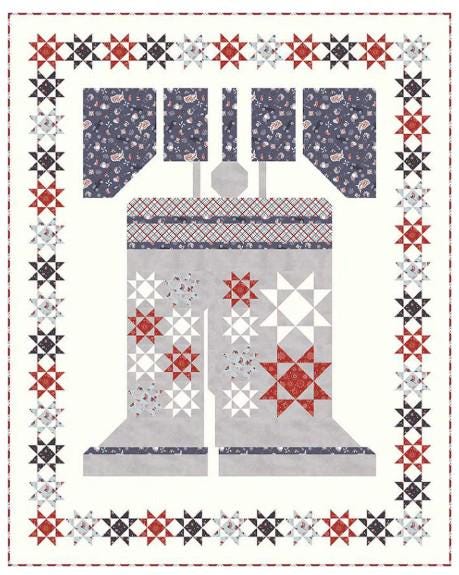 What a perfect way to celebrate 250 years of our country with this Liberty Bell quilt called Hear Ye, Hear Ye by Wendy Sheppard. This shows a large Liberty Bell complete with crack in it surrounded by quilted stars. Get this ready for your celebrations this July 4th.
