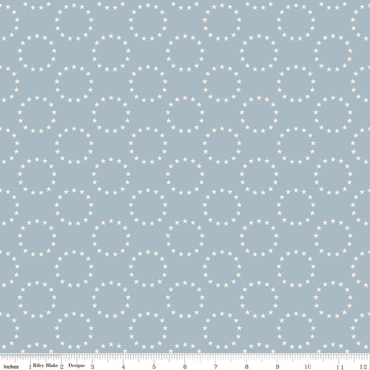 There is no better year than this year to celebrate our nation's 250th birthday. If ever there was a time to quilt/sew or craft something, now is the time. This particular fabric is from the Independence/Celebrating 250 years line. It shows a circle of 13 stars, one for each of the 13 colonies. Background is a light blue.