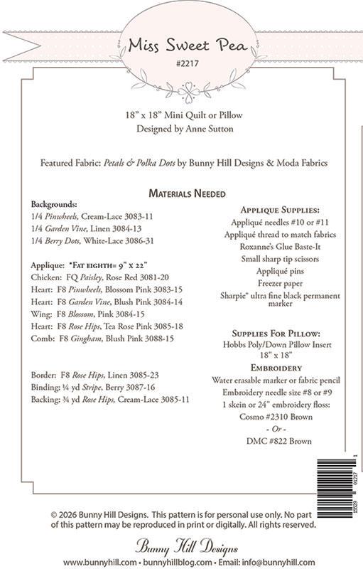 One of the most darling things about this mini quilt is that the hen named Miss Sweet Pea is sleeping. You may not be able to tell from the photos, but she is asleep at at her feet are her little hearts instead of chicks. This must show all of the love she has for her babies.