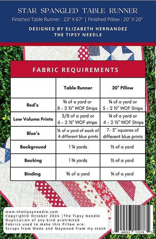 What a perfect way to celebrate 250 years of our country with this quilted table runner pattern called Star Spangled Table Runner and Pillow too. The beautiful runner can be used during Independence Day, Valentine's or year round. It shows heart blocks with an American flag theme. This will be perfect for your celebrations.