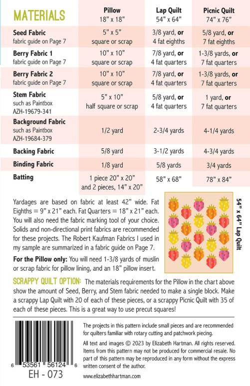This lovely quilt will get your family in the mood for family gatherings with yummy food. Berry season can get a quilt for year round. Change the color of your fabrics and change the entire mood of the quilt. Comes with instructions for the quilts in two sizes and matching pillow.