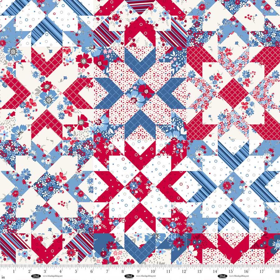 There is no better year than this year to celebrate our nation's 250th birthday. If ever there was a time to quilt, sew or craft something, now is the time. This particular fabric is from the Front Porch Charm line by Blank Quilting Co. It is just perfect for your patriotic sewing. This is the jelly roll to the line.
