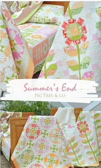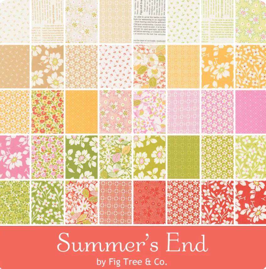 How will you spend the end of summer? Perhaps admiring the last of the flowers, enjoying those remaining warm days and the warmth of the sun. Either way, use these fabulous prints to create your own ending to summer. This charm pack is called Summer's End by Fig Tree & Co. It is sure to bring happiness to your summer.