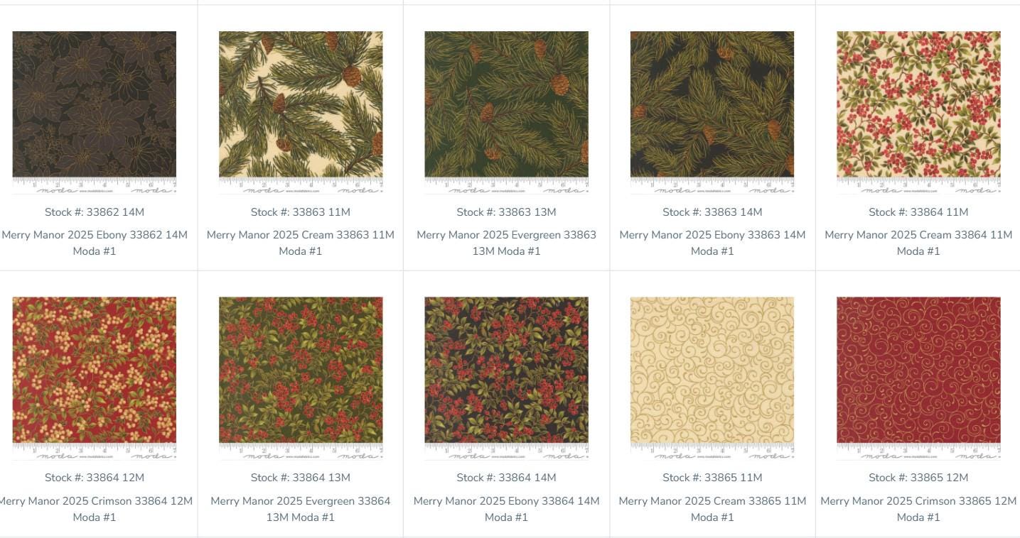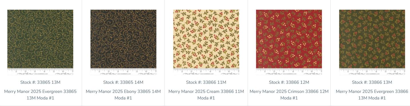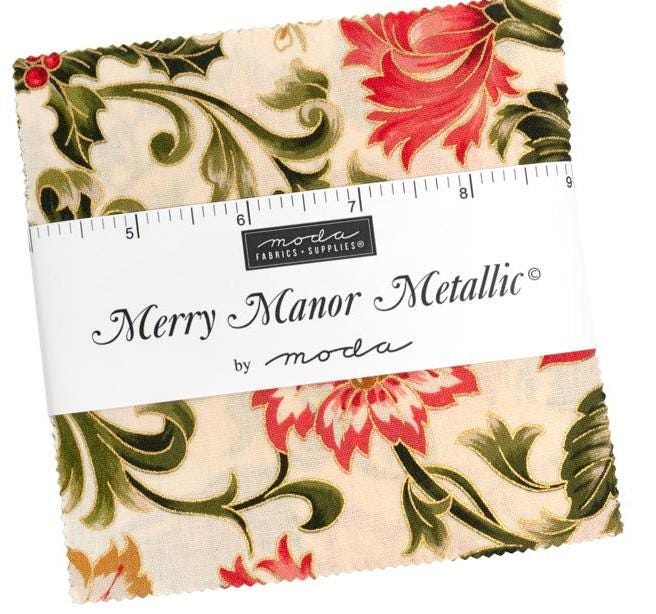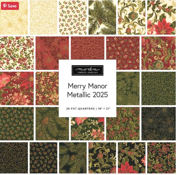 This fabric line is all about the traditions of Christmas. It is a more formal fabric. The line is called Merry Manor Metallic by Moda. The fabric does have metallic gold on all of the fabrics which really makes the art pop. This fabric is beautiful.