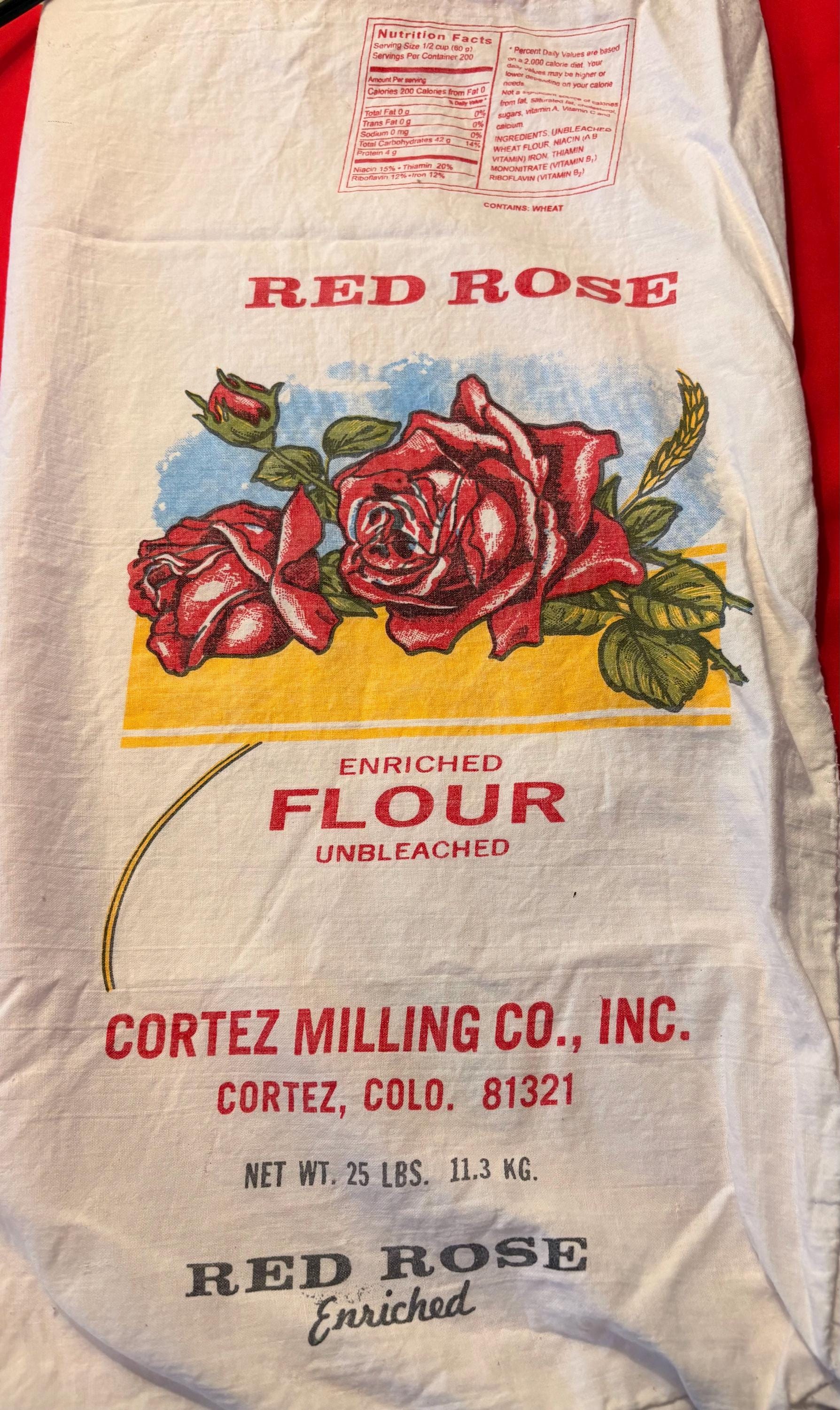 Note: This item is not vintage, but it is made to look vintage. It is an actual feedsack from a company that still puts their flour in fabric bags just like back in the day.