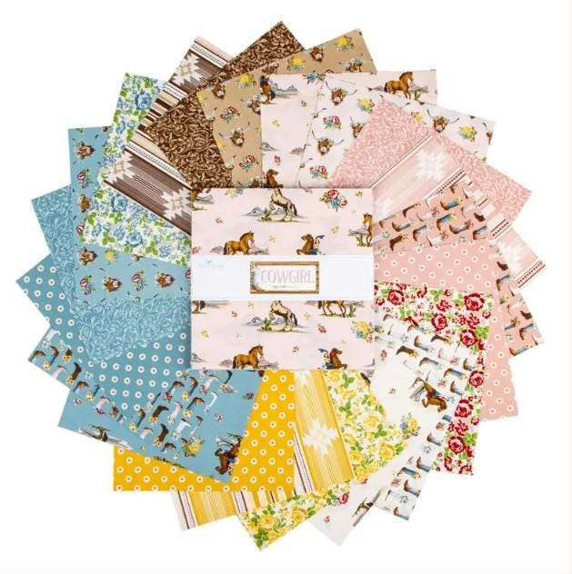 Let's get away to the west for some horseback riding in our boots as we stroll through the flowers and admire the Highland cows. This fabric line called Cowgirl is perfect for that Western flair. Great retro artwork and color schemes. Be sure to see the matching cheater panel. It is a perfect project just waiting to be made.
