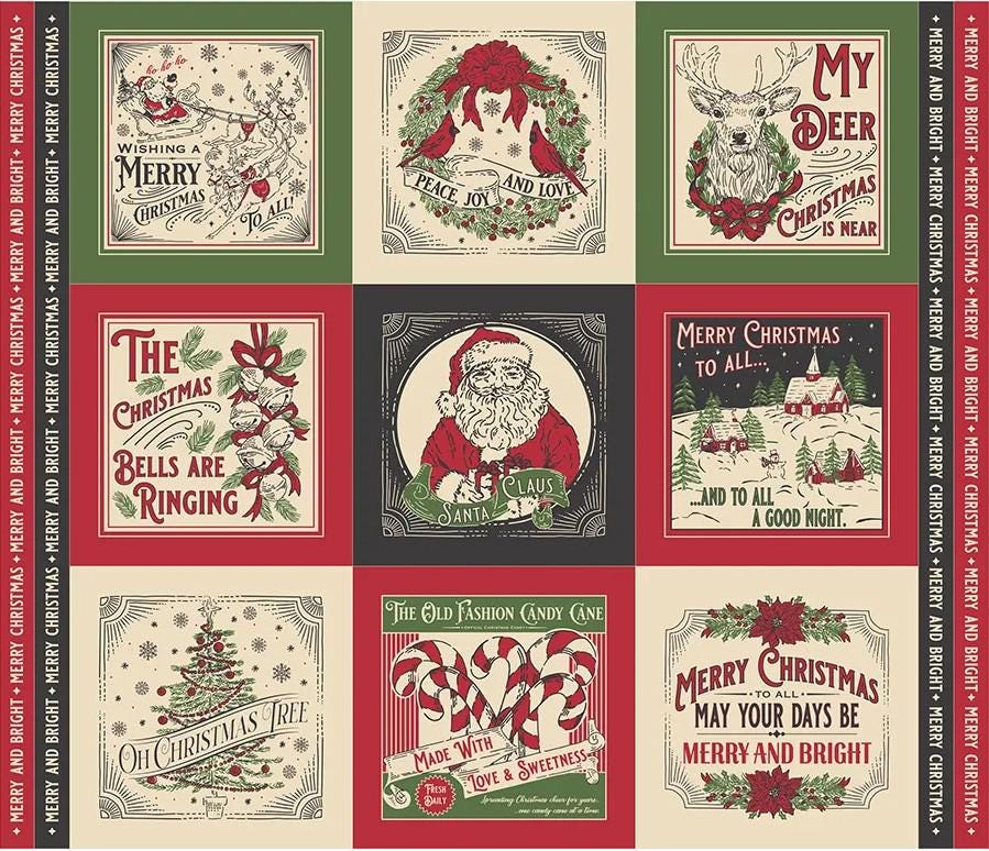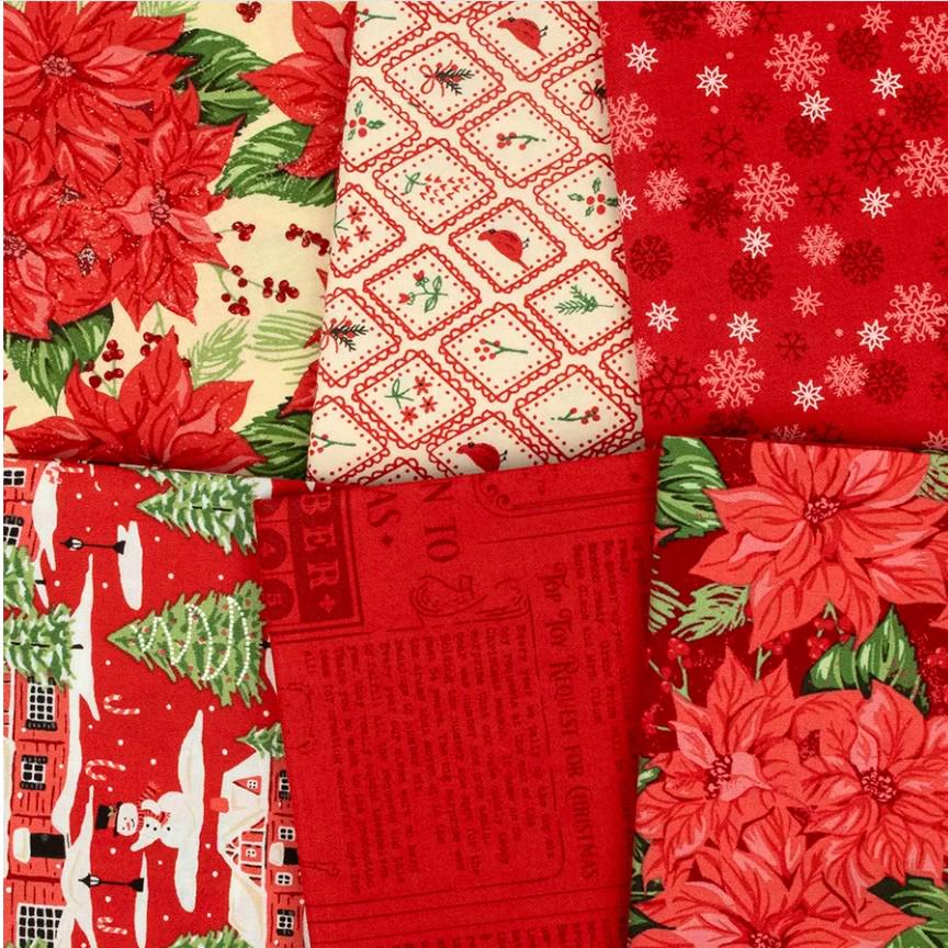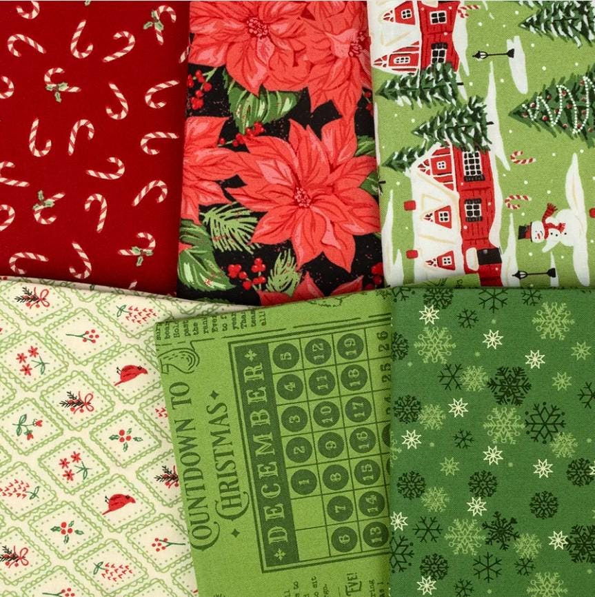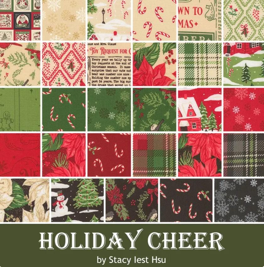 If you love vintage, you will love this FAT QUARTER BUNDLE. This has everything for a Very Vintage Christmas. The name of this fabric line is Holiday Cheer, and boy will this make your festivities cheerful. This line incorporates a vintage style newspaper on the fabric with all kinds of articles about Christmas, Santa, a recipe and more. There is also poinsettias, snowmen, snow covered cottages, cardinals, candy canes, plaids, Christmas wreaths, Christmas trees, snowflakes, holly, mistletoe, and much more. Get your Christmas spirit started with one of our favorite lines of the year.