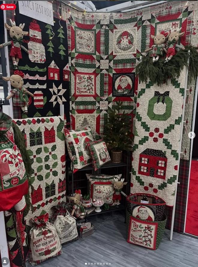 Also, the last two photos show various fabric and precuts from this line. It also shows the panel for sale seperately. This listing is only for the charm pack. The last photo shows the booth that the designer of this fabric line created. Her name is Stacy Iest Hsu. She is an amazing fabric designer. We carry many of her items.