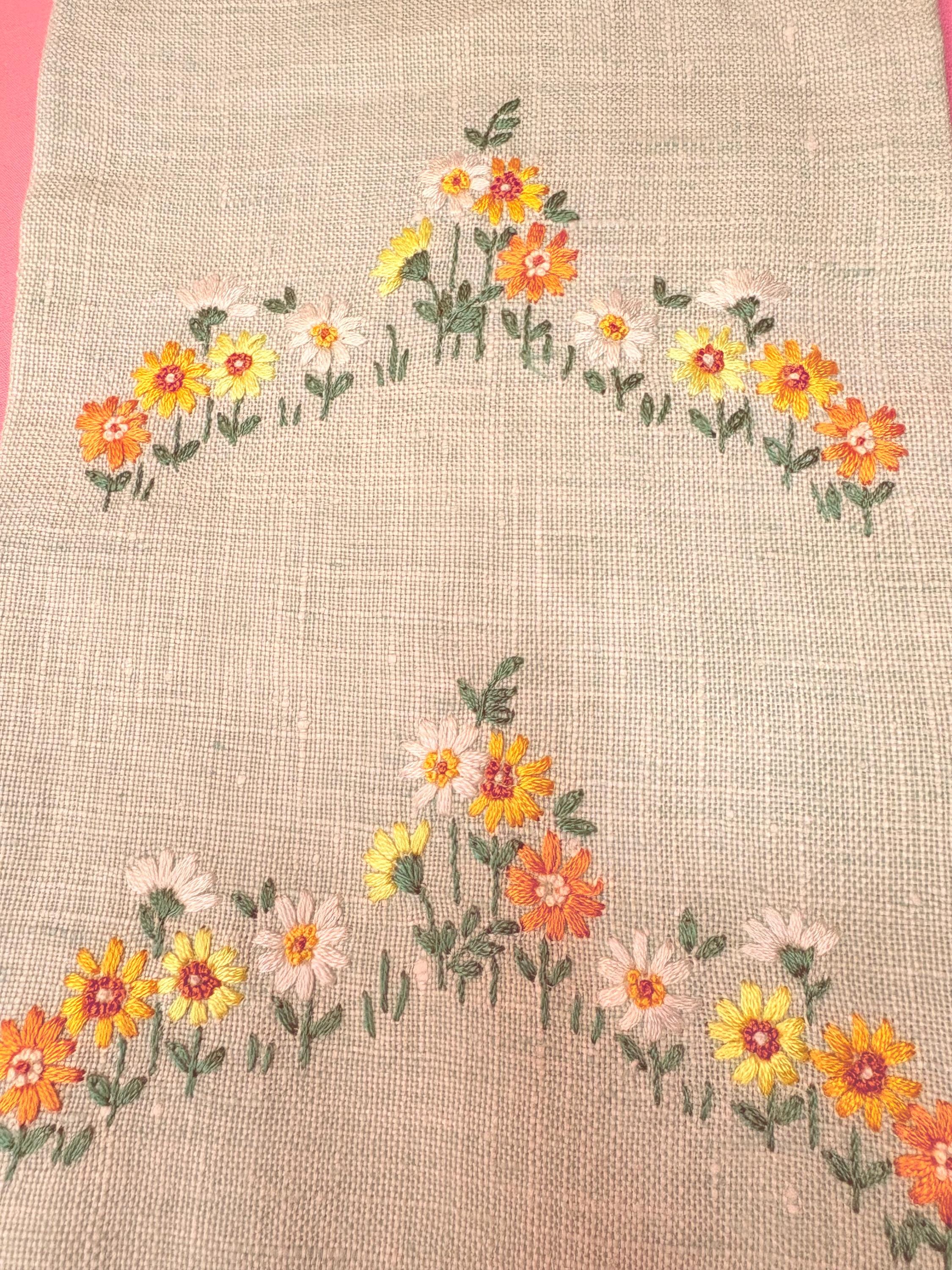 Larger Floral Towel: 13.5" wide by 18" long excluding the fringe.