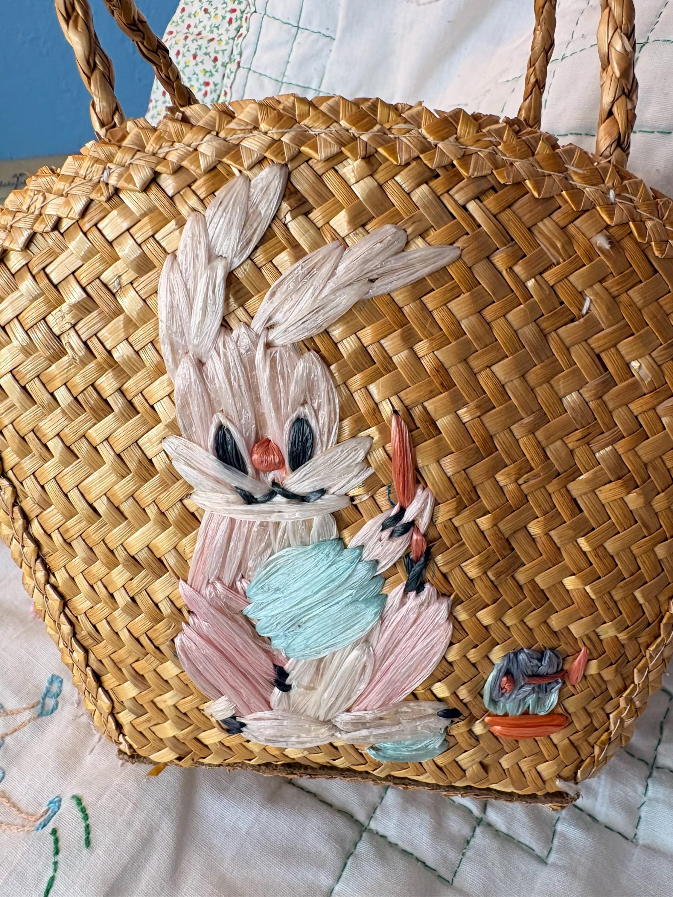 These are darling 1950s/1960s Children's size Vintage Purses. This listing is for one bag. They are so cute. You have a choice between a bunny or a bird. These are handwoven from straw.