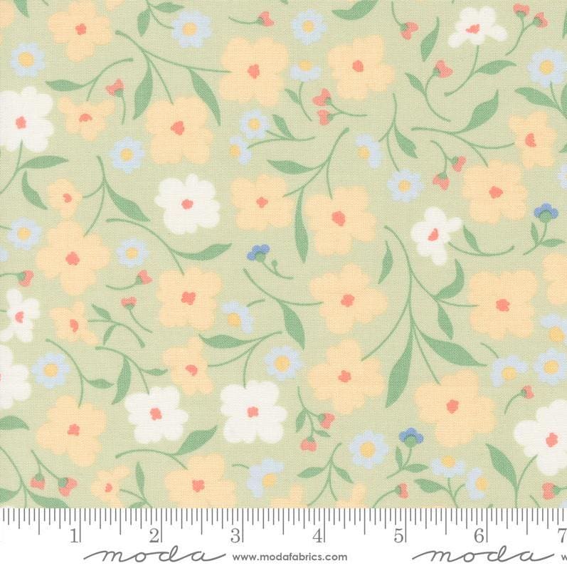 This sweet line is called COTTAGE CHARM from Moda. This particular print shows darling vintage style florals on a muted jade green background. This is the perfect cottage print for your spring and summer quilting and sewing.