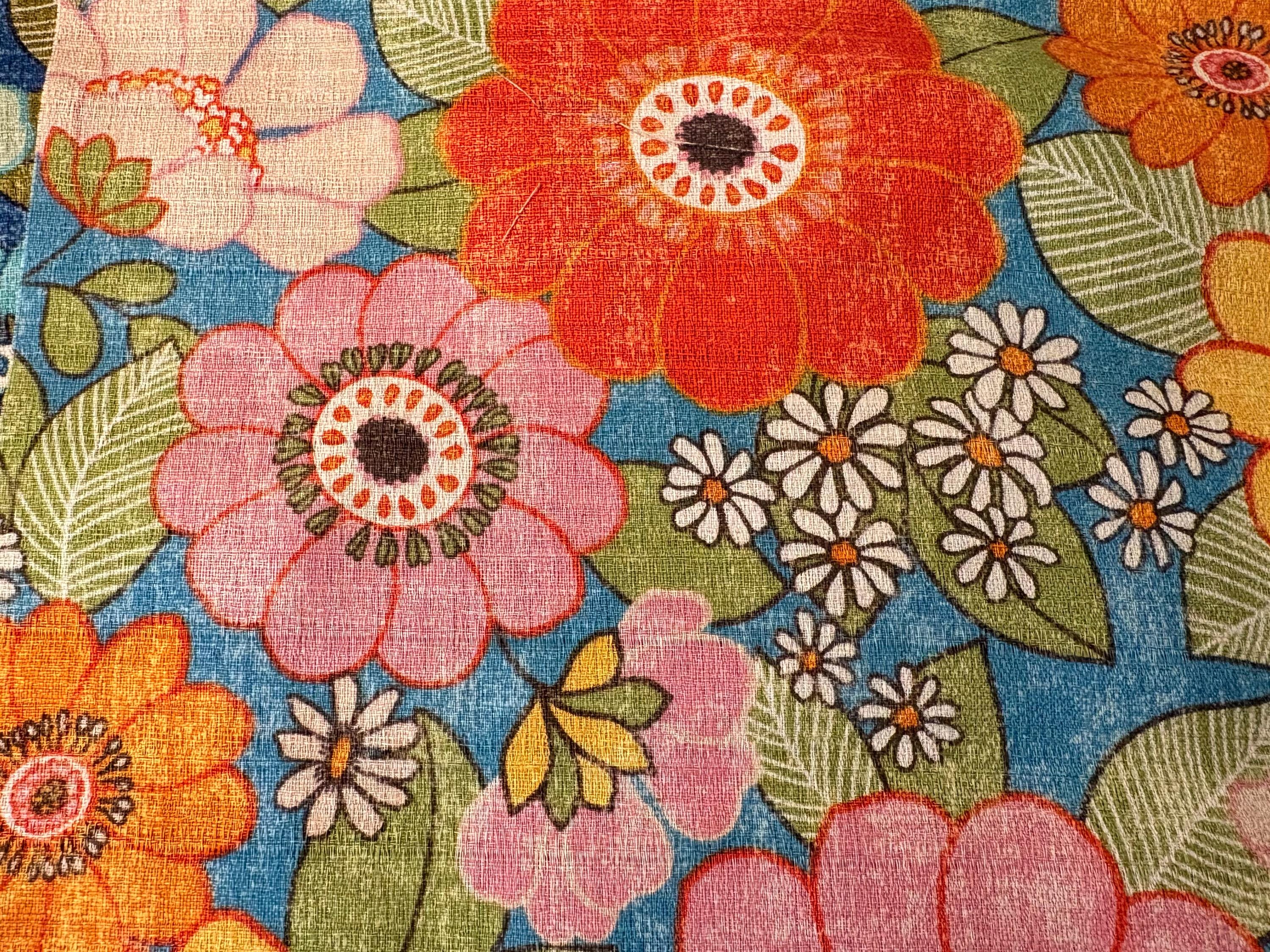 This is a set of 4 squares, all different colors of the same floral art. Fabric is from Japan by Kokka, one of the top manufactuers in retro fabrics. This is a retro set of squares with a reminiscent of the 60s and 70s. Perfect for bag making, mini quilts, and more. Made from 100% dobby cotton which is a textured woven cotton.