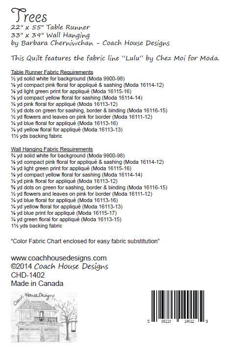 Finished size for Table Runner: 22" x 55"